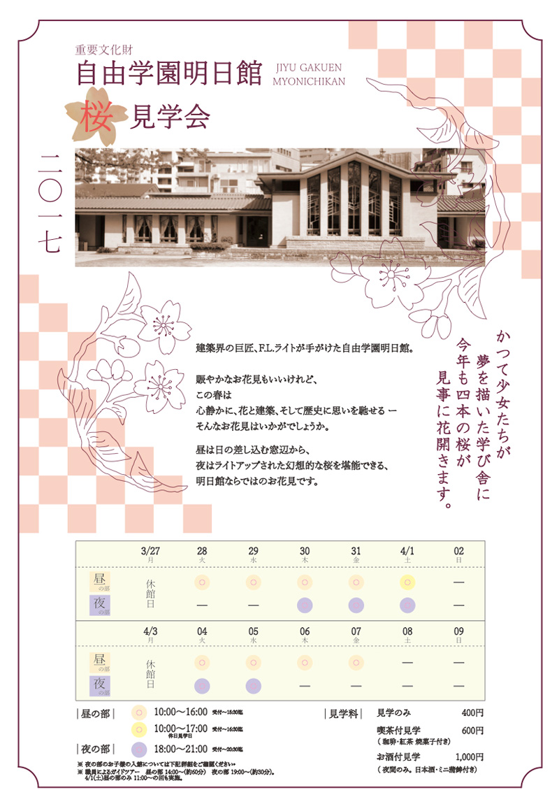 2017年の自由学園明日館「桜見学会」の予定表(同館公式サイトより)