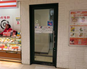 場所はISP南館の「崎陽軒」の隣で、ドアには何も示されていませんが、ここが44番出口のようです。なんだか秘密の抜け道めいてますが、地下から地上へ出られる「出口」であることは間違いありません。