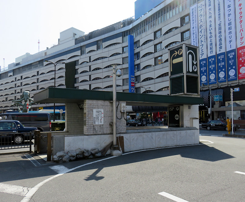 東口にある池袋西武の「ルイ・ヴィトン」の目の前、タクシー待機場となっている広場上に「通気口」のように建つ建物、ここに「44番」との表示が見えます。