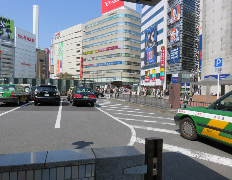 ところがこの出口、横断歩道も歩道もないのでどうやったら行けるのかが分かりません。止むなく東口駅前喫煙所の横を通り抜け、車の通行が途切れた隙を縫って辿り着くことができましたが、辺りはタクシーと休憩中の運転手ばかり。一般の乗客らしき人は見当たりません。