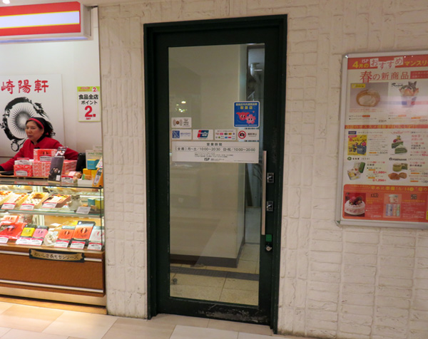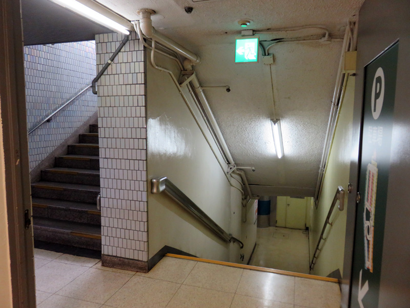 場所はISP南館の「崎陽軒」の隣で、ドアには何も示されていませんが、ここが44番出口のようです。なんだか秘密の抜け道めいてますが、地下から地上へ出られる「出口」であることは間違いありません。