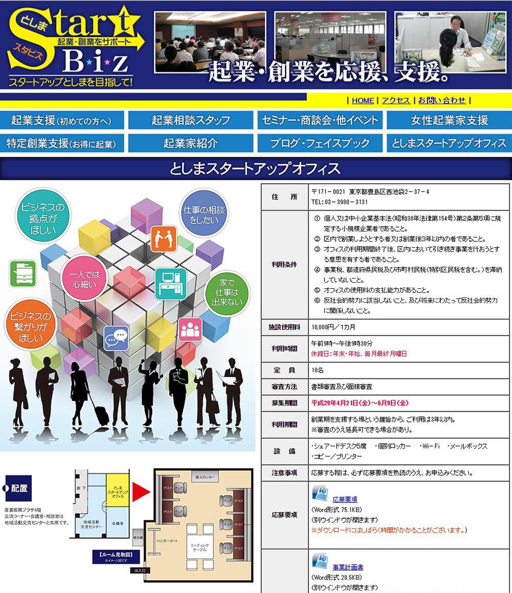 ・としまスタートアップオフィス使用者募集受付開始(豊島区、2017年4月21日)