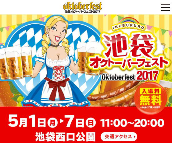 5月1日から行われる「池袋オクトーバーフェスト」2017の公式サイト