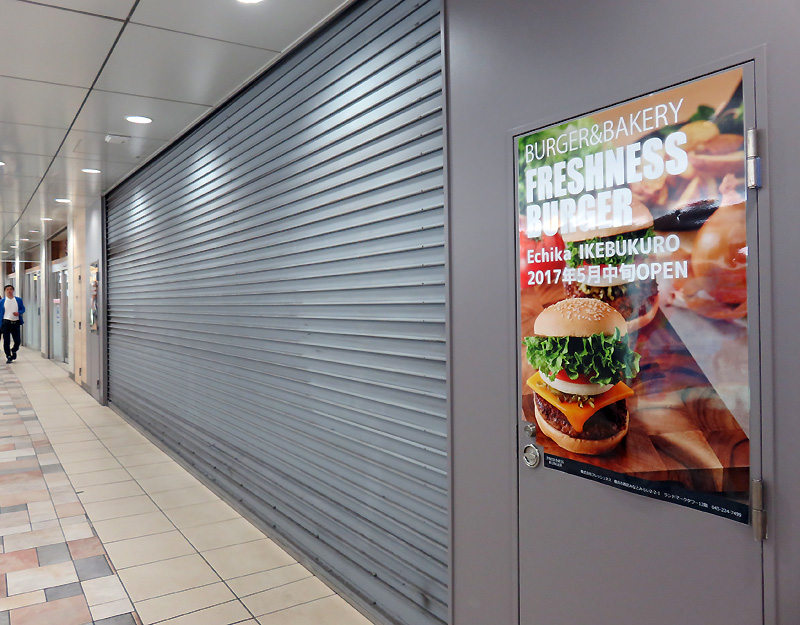池袋駅の副都心線西改札口近くでオープンを予定している「FRESHNESS BURGER(フレッシュネスバーガー)」は今月(2017年5月)15日(月)に営業を開始すると商業施設Echika(エチカ)池袋を運営するメトロプロパティーズが発表しました。