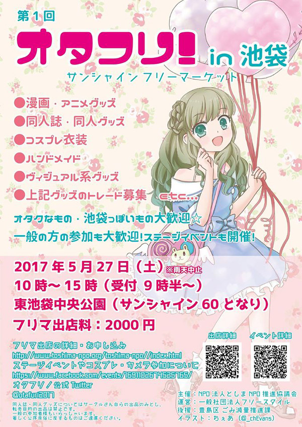 NPO法人としまNPO推進協議会が主催するこのフリーマーケットは「オタフリ」と名付けられ、オタクなものや「池袋っぽいもの」を集めるとのコンセプトで、コスプレイヤーによるステージパフォーマンスも行われる予定です。開催は10時から15時まで、入場は無料。雨天の場合は中止となります。