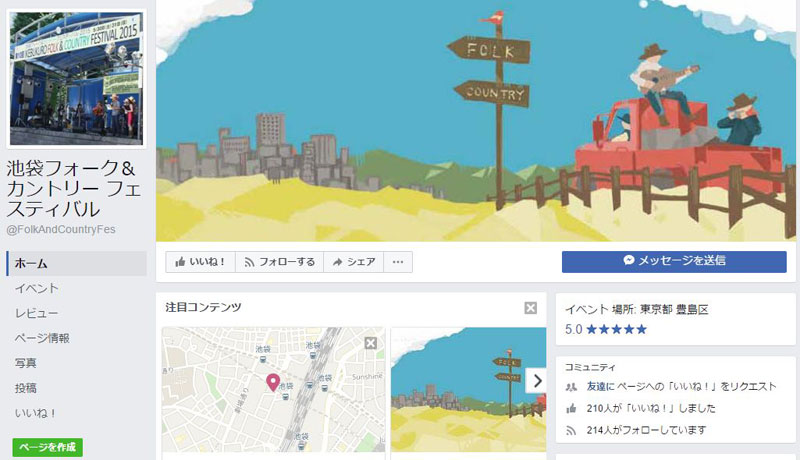 池袋フォーク&カントリー フェスティバルの公式Facebookページ