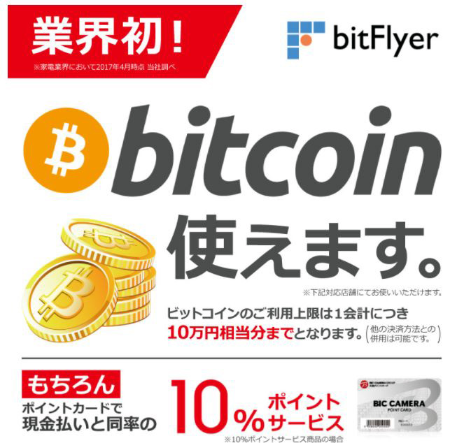 ビックカメラでは今年(2017年)4月に有楽町店と新宿東口店でビットコインによる決済対応を開始しており、これを池袋本店など全国の店舗に拡大したもの。利用上限は1回あたり10万円相当分まで。