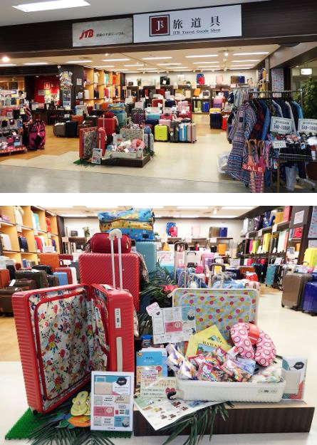 同店はJTBグループの旅行用品専門店で、多種多様なスーツケース、便利な旅の小物類に加え、日本の伝統工芸品を集めたセレクトコーナーを展開していました。