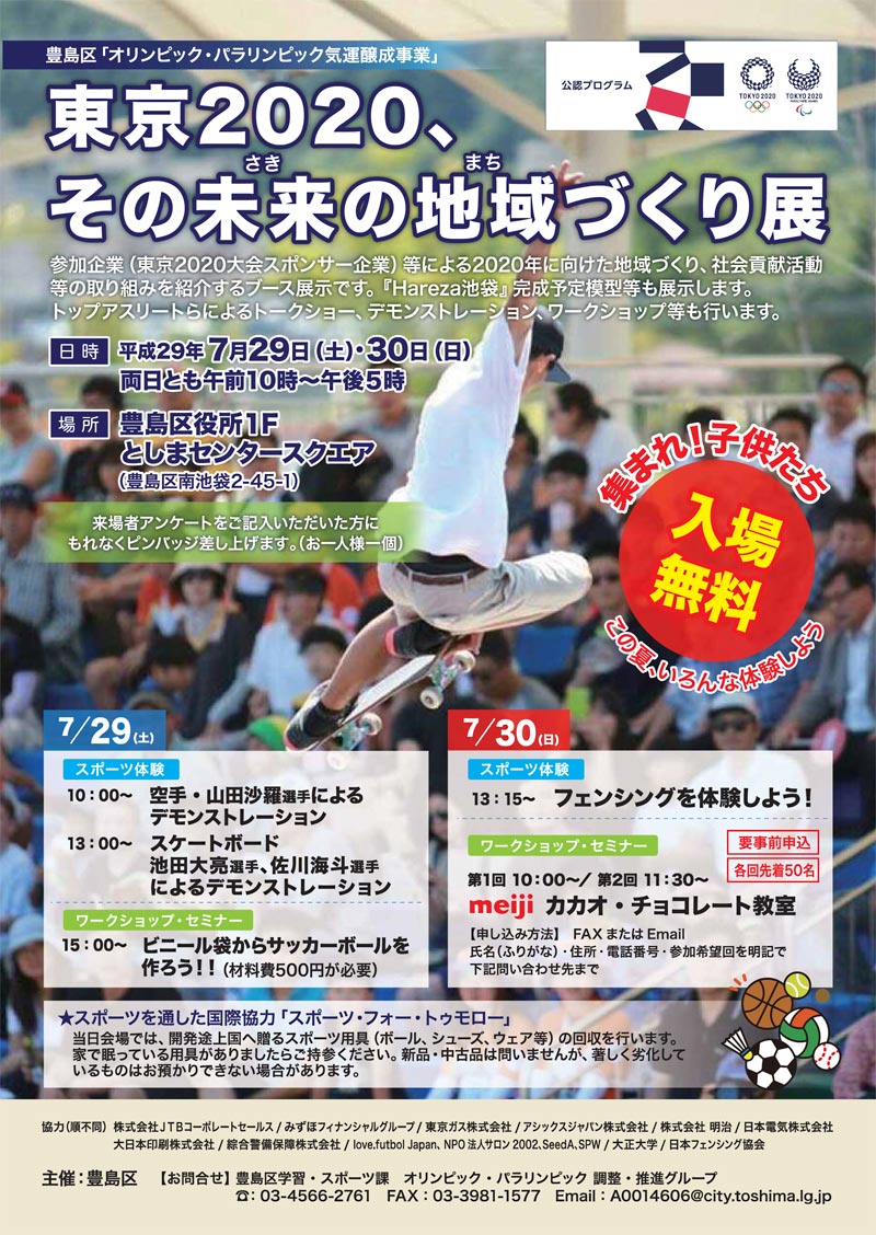 ・「東京2020、その未来(さき)の地域(まち)づくり展」について(豊島区、7月29日~30日)