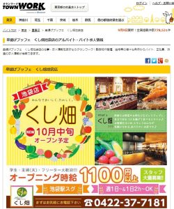 アルバイト情報サイト「タウンワーク」に掲載された「串揚げブッフェくし畑」の求人広告