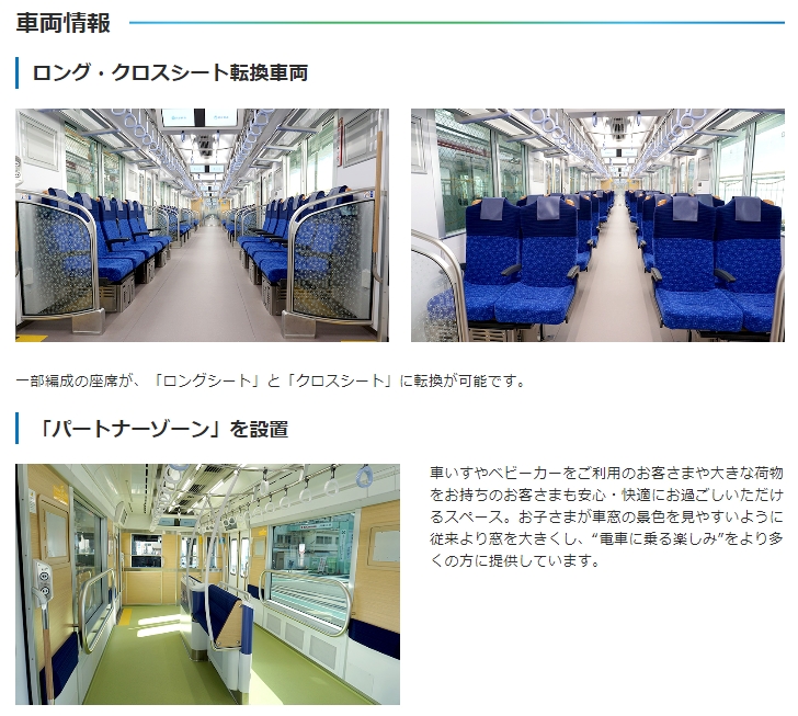 この「40000系」と呼ばれる車両内には、車イスやベビーカーの利用者をはじめ、大きな荷物を持つ乗客も快適に利用できる「パートナーゾーン」を設置。車いすやベビーカーを固定することができる設備や、軽く腰掛けられる新しいデザインの座席のほか、子どもが車窓の風景を楽しめるように従来より窓を大きくするなど、「電車に乗る楽しみ」も提供しているのが特徴です。