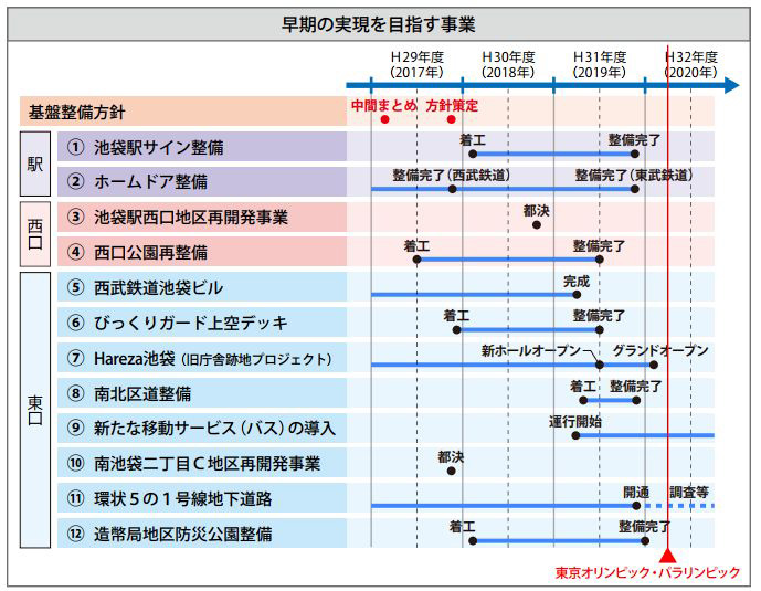 2020年に向けてさまざまな再開発や整備が動き出している(2017年5月豊島区「池袋駅周辺地域基盤整備方針 中間まとめ」[PDF]より)