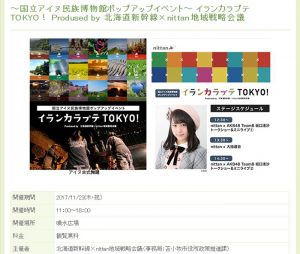 「国立アイヌ民族博物館ポップアップイベント~イランカラプテ TOKYO」の案内ページ(サンシャインシティ)