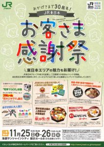 11月25日(土)と26日(日)の2日間にサンシャインシティで行われる「JR東日本お客さま感謝祭」のチラシ(株式会社ジェイアール東日本都市開発のサイトより)