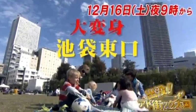 6年ぶりに“アド街”で東池袋が取り上げられます。地域の著名スポットをランキング形式で紹介するテレビ東京系の情報番組「出没!アド街ック天国」で、あす(2017年12月)16日(土)21時からの放送分が池袋東口の特集となりました。同番組で池袋が取り上げられるのは2011年8月以来6年4カ月ぶりのこと。