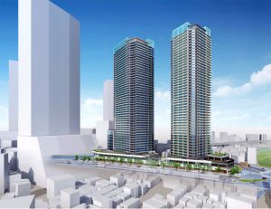 地下広場を設置するほか、低層部には保健所など区庁舎と連携した公共施設をはじめ、保育所などの子育て施設や高齢者施設、商業施設などを導入。上層部のマンションは「多様なニーズに対応した高質な居住機能」を備えるといい、約1450戸の住戸を設ける計画です。