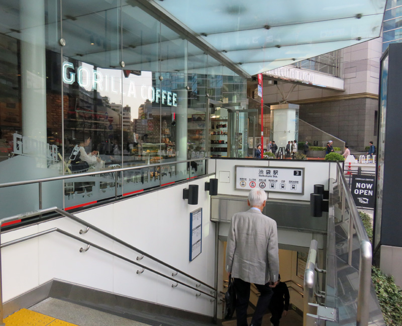 エソラ池袋のテナント「ゴリラコーヒー」の横にある「3番出口」、右に見えるのはメトロポリタンプラザの正面出入口