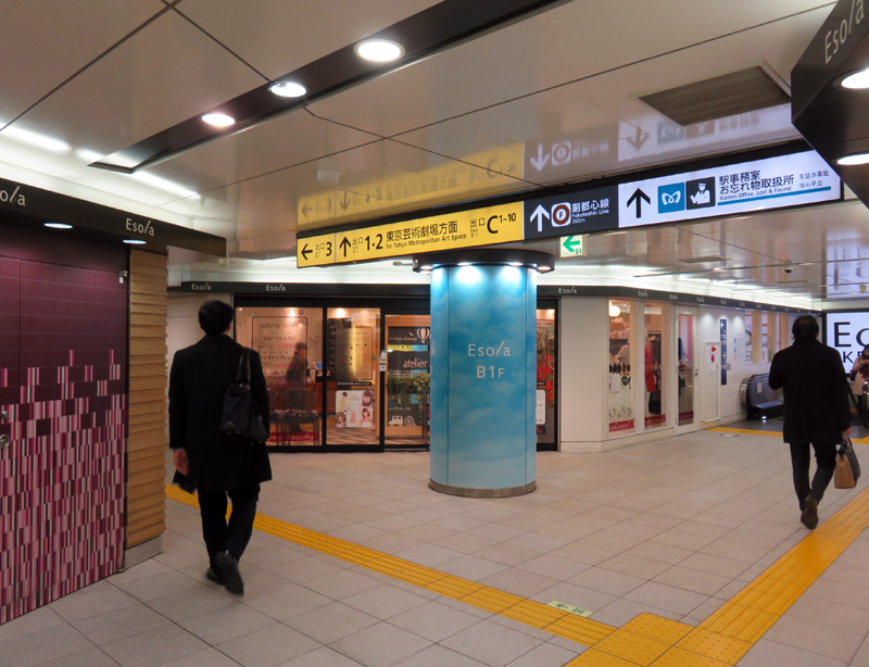 3番出口は、エソラへ行く際はもちろん、池袋西口公園の円形舞台の裏手(公共喫煙所)や「東武アネックススパイス2」などへ行く際も最適の出口。「ルミネ池袋」や「東武百貨店プラザ館」(メトロポリタンプラザ正面出入口)も目の前です。また、「ホテルメトロポリタン」(メトロポリタン通り経由)の正面玄関へ行く際は、もっとも分かりやすい出口となっています。(2b出口が距離的には至近だが少し分かりづらい)