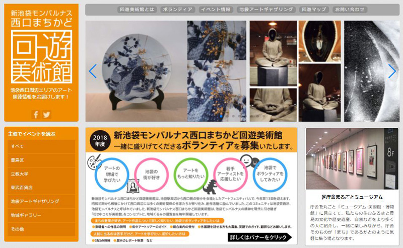 今年に入りリニューアルされた「新池袋モンパルナス西口まちかど回遊美術館」の公式サイト
