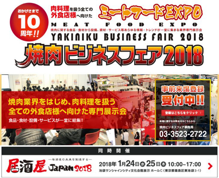 「第10回~ミートフードEXPO~焼肉ビジネスフェア2018in東京」(1月24日~25日)