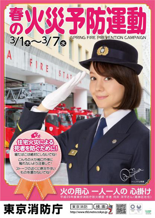 2018年「春の火災予防運動」のポスターに起用されたトリンドル玲奈さん(東京消防庁の公式サイトより)