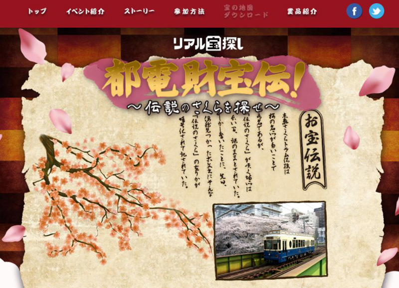 3月17日(土)から31日(土)まで行われる「リアル宝探し 都電財宝伝!伝説のさくらを探せ」の特設サイト(東京都交通局)