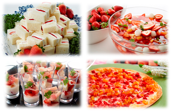 苺を使った「スイーツピザ」やサンドウィッチ」などの新メニュー。