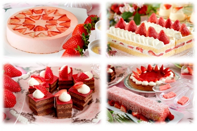 ■おすすめ(1)ロールやホールケーキ、一口サイズの可愛いカップケーキまで、すべて苺を使ったスイーツを20種類ご用意。