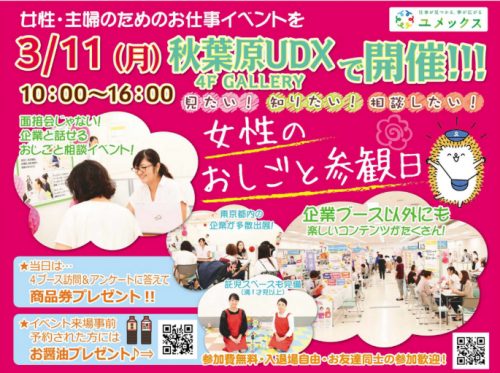 女性のおしごと参観日 @秋葉原(秋葉原UDX GALLERY)/3月11日(月)10:00~16:00