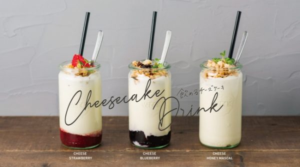 いちごの赤とチーズの白のコントラストがかわいい、「CHEESE STRAWBERRY」、甘酸っぱいブルーベリー味の「CHEESE BLUEBERRY」、ハチミツがほのかに香る「CHEESE HONEY MASCAL」と、どれもチーズ好きにはたまらないドリンクとなっております。はじめはシンプルにチーズそのものの甘みを感じて、そのあとはオリジナルシロップを混ぜながら味の変化を楽しんでお召し上がりください。