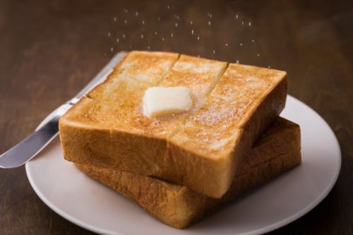 食パンを口に含んだ時に感じる芳醇なバターの風味をお楽しみいただけます。特に、トーストをする際にはクラスト(食パンの耳)はまるでデニッシュのような食感とバターの香りが口に広がり、コクのある旨みが感じられます。