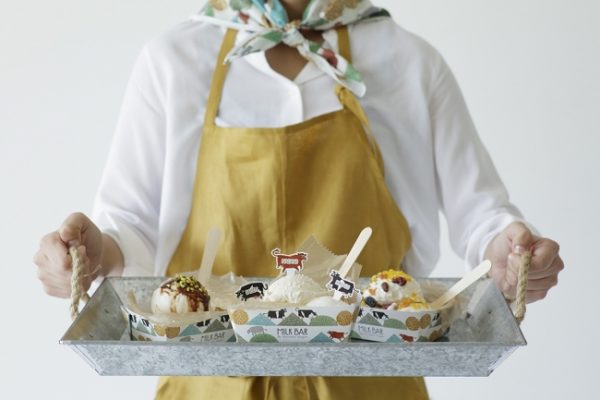 産地の違う、北海道牛乳、長野牛乳、大山牛乳を使用した3つのミルクアイスを食べ比べ