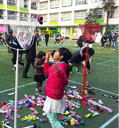 くつしたまいれ…カラフルな靴下を使った玉入れ