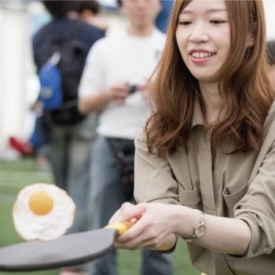 フライングエッグ…ブラジルの「フレスコボール」のラケットをフライパンに見立てて目玉焼きをパス。