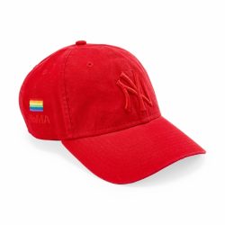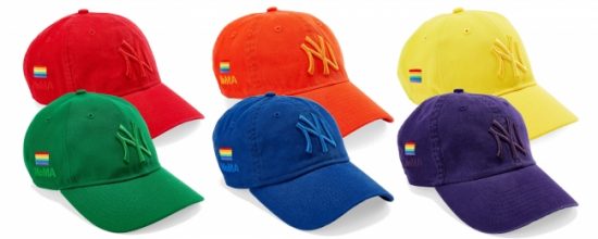 MoMA プライド コレクションのキャップとボーダーシャツは、レインボーフラッグの6色とリンクしています。