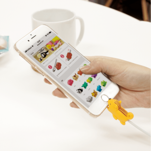 小さいながらも細部までこだわったデザインで人気のiPhone純正充電ケーブル用アクセサリーです。ケーブルに装着しスマホ本体に差し込むことで、まるでキャラクターがスマホに噛みついているかのように見えます。アクセサリーとしての可愛さはもちろん、ケーブルの断線予防にもなる優れものです。