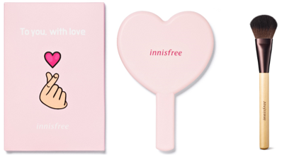 イニスフリーオリジナルの可愛いハート型ミラーとチークブラシのセットをプレゼント