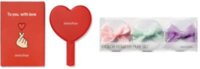 イニスフリーオリジナルの可愛いハート型ミラーとパフセットをプレゼント