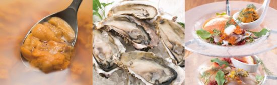 公的検査を行い、厳選した安心・安全な【生牡蠣】や、殻から取り出してすぐに海水同様の塩水に浸す事で獲れたてに近い味わいを楽しめる【生うに】、バル風にアレンジした【鮮魚】の盛り合わせやカルパッチョをご用意。