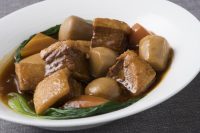 一度蒸してからじっくりと時間をかけて中華風に煮込んだ豚はほろほろと口の中でとろけます。甘辛い味付けは魚沼産コシヒカリと相性ぴったりです。