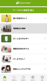初心者でもイメージしやすいように、銘柄はテーマから選べるようになっています。