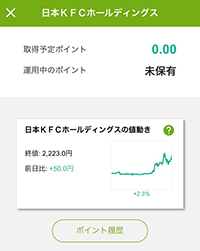 1ポイントから運用できるので、フリーポイントの100ポイントを使って好きな銘柄に交換してみてくださいね。
