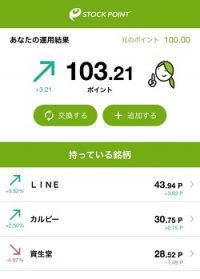 西村:100ポイントからスタートしたStockPoint(ストックポイント)が103.21ポイントに増えていました!すごい嬉しい~♪