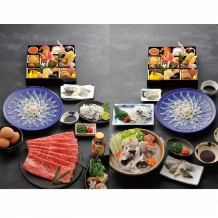 <左>福福セットA36,720円[2人前](ミニおせち・ふく刺し・牛すき焼用)