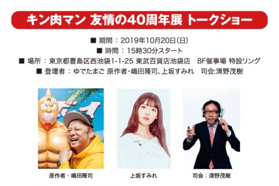 2019年9月、あべのハルカス近鉄本店で開催され、大興奮のまま最終日を迎えた『キン肉マン 友情の40周年展』が、10月16日(水)~10月29日(火)まで東京の東武百貨店池袋店で開催される。