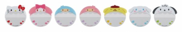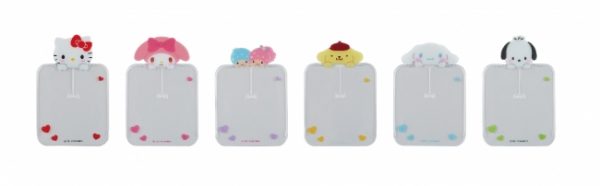 ハローキティ、マイメロディ、リトルツインスターズ、ポムポムプリン、シナモロール、ポチャッコの6キャラクター展開。