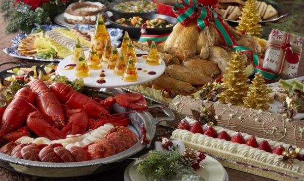 ローストビーフ等の通常メニューに、クリスマス期間限定メニューを加え約25種類のお料理をご提供いたします。