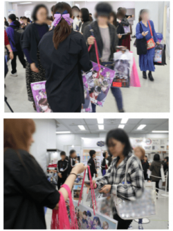 ブース前では、天下統一恋の乱Love balladとあやかし恋廻りのイラストが両面にプリントされた特製イラストバッグを無料で配布いたしました。