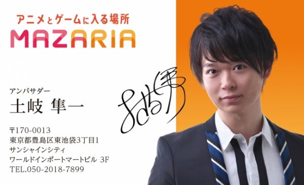 人気声優として、数多くのアニメやゲームでご活躍されている土岐隼一さんは、MAZARIAのコンセプトである「アニメやゲームに入る場所」の魅力を十分に伝えていただける方と考え、アンバサダーをお願いしました。等身大でMAZARIAの楽しさを伝えてくださるのが楽しみです。