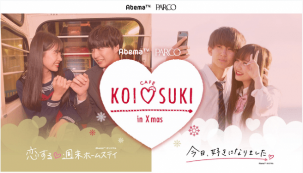 株式会社パルコ(以下パルコ)は、インターネットテレビ局「AbemaTV(アベマティーヴィー)」オリジナル恋愛リアリティショー「今日、好きになりました。」「恋する 週末ホームステイ」の2番組とコラボレーションして『KOI♡SUKI カフェ in Xmas」を期間限定で池袋PARCO・福岡PARCOの2店舗で実施します。